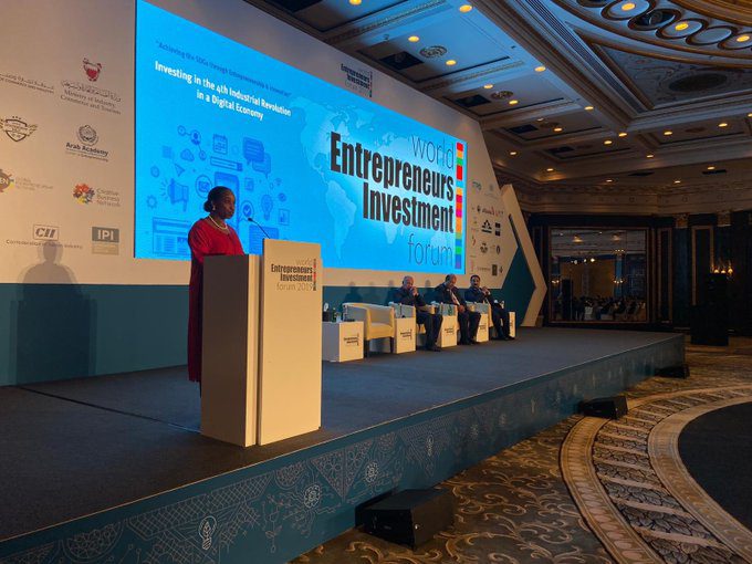 Ms. Fatou Haidara, Managing Director at @UNIDO stresses on the theme of this year’s forum in achieving the SDGs through #entrepreneurship and # innovation in order to highlight the importance of startups in transforming our #future